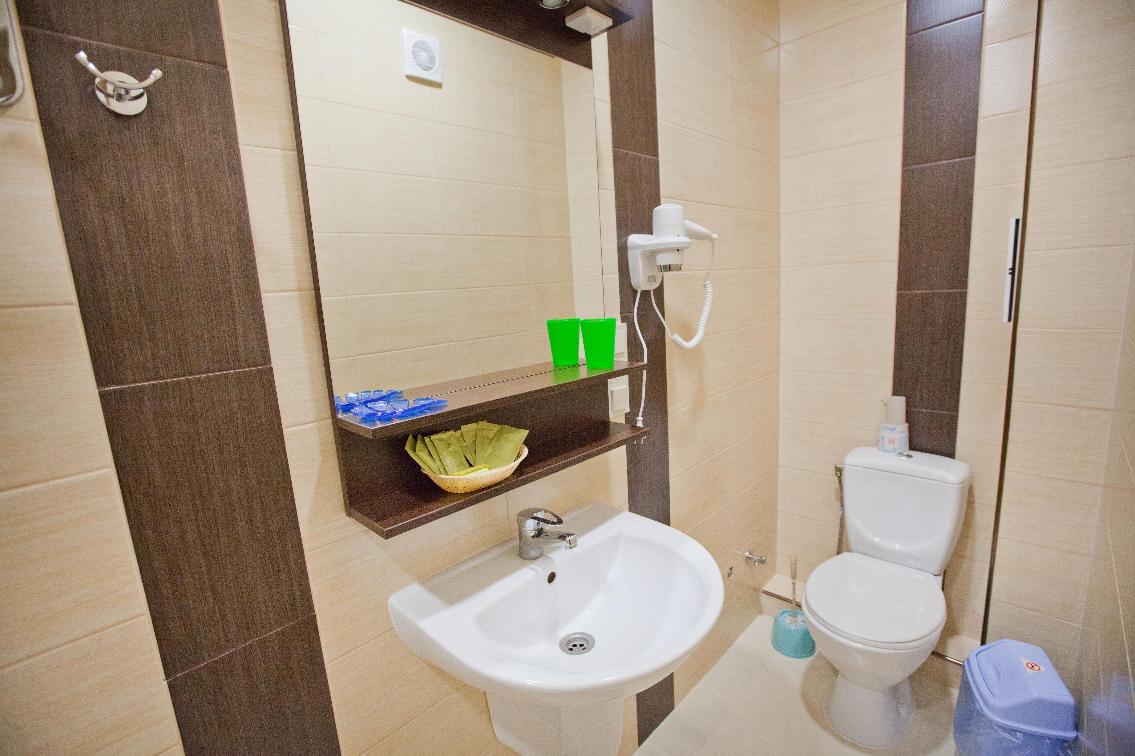 - санузел (душ, туалет, умывальник, фен, полотенца, гигиенические принадлежности)